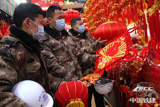悉心選購“中國結”就地過年“扮靚家” 春節前夕,中鐵二十局市政公司蘭州新區房建項目施工一線員工在選購“中國結”等年貨。春節臨近,該公司所屬工程項目部指定專人采購年貨,為就地過年的勞務工等人員“扮靚家”,喜迎新春佳節到來。 許崗攝( 詳細 )